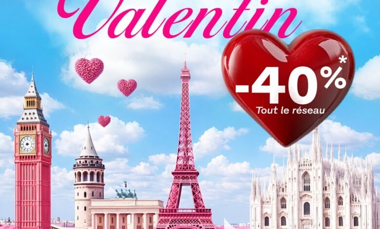 Nouvelair annonce le lancement d’une offre promotionnelle spéciale Saint-Valentin. Les voyageurs peuvent ainsi bénéficier d’une réduction de 40 % sur le prix hors taxes des billets aller-retour, valable sur l’ensemble du réseau régulier de la compagnie. Cette offre permet aux voyageurs de bénéficier de tarifs avantageux et de concrétiser leurs projets de voyage dans les meilleures conditions. Détails de l’offre : · Réduction : 40%* sur le prix hors taxes des billets en aller-retour.